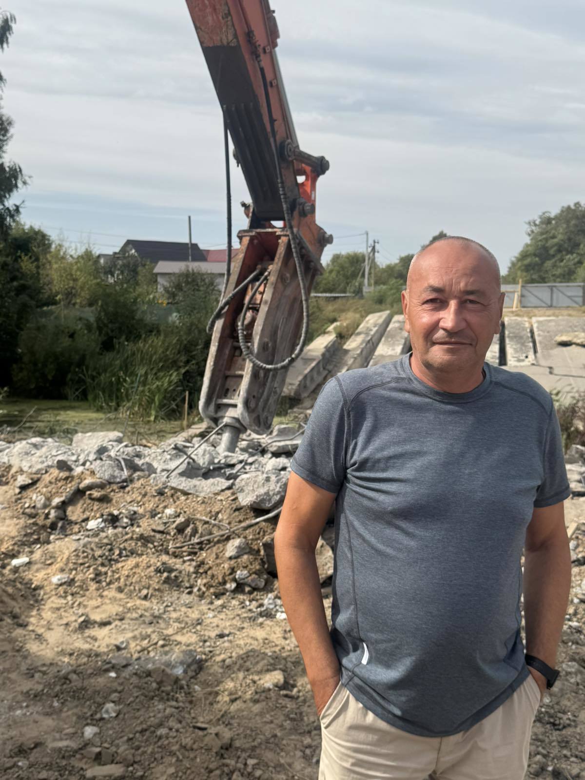Сергій Бондарець на будівельному майданчику біля зруйнованого мосту на Кільцевій