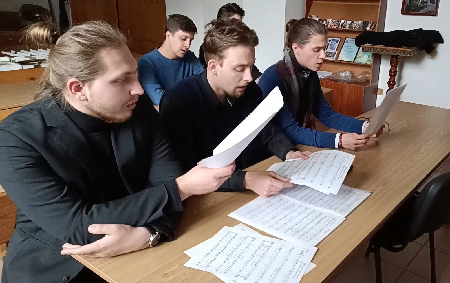 — Спершу їздили співати службу до мого батька, — згадує Феодосій. — До церкви в селі Павлівка на Ріпкинщині. Біля Любеча. Поїхали ми вдвох. Іншим разом взяли ще людей. Одногрупників. Розучили службу. Спершу четверо, потім шестеро. Відшліфовували виконання. Сільська церква — дві-три людини приходить. Ми туди їздили більше для себе.