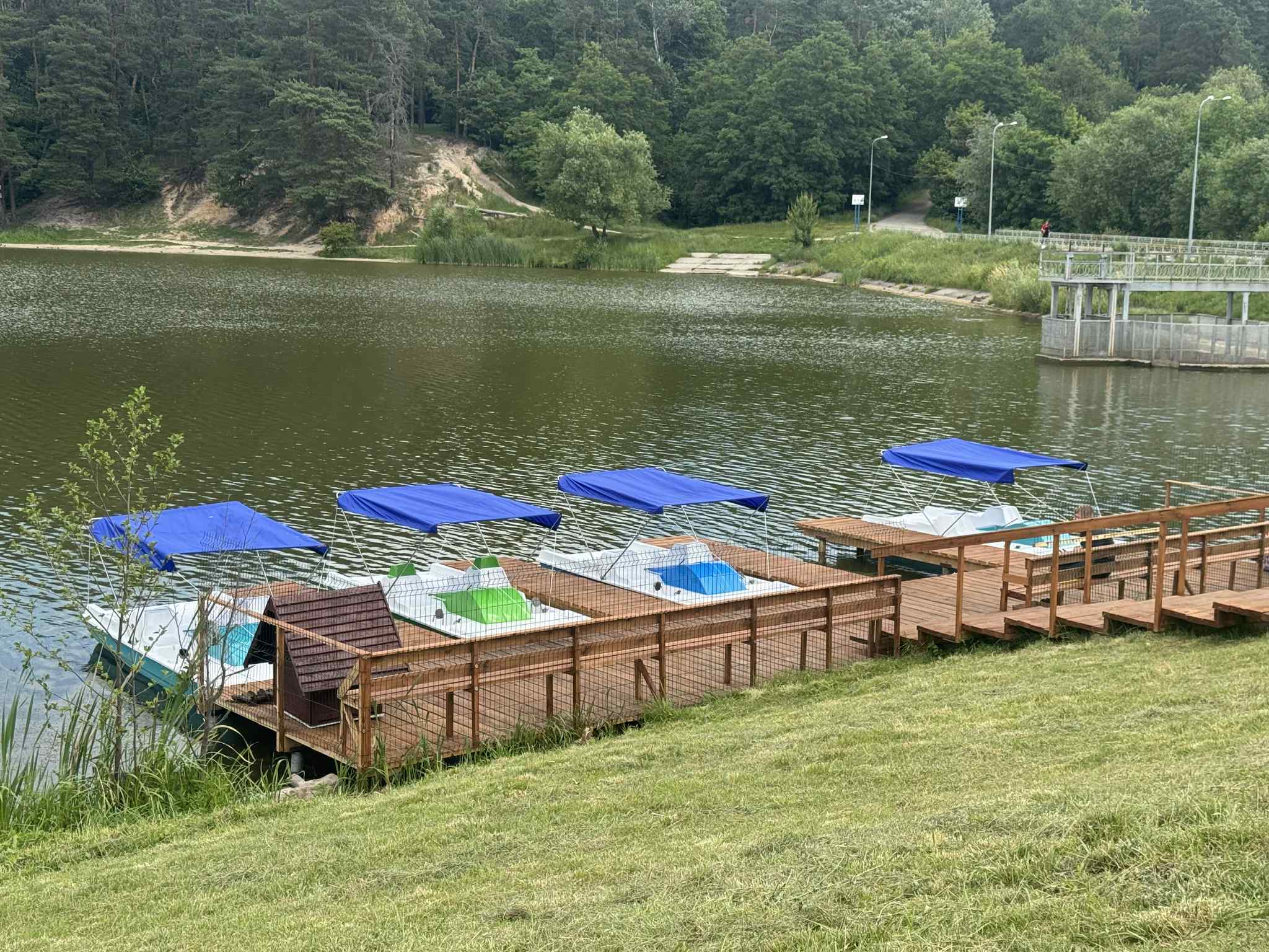 У цьому році в Чернігові відкрили другу локацію, де можна поплавати на катамарані. На другій дамбі Стрижня, в районі вулиці Єськова. Нові дерев’яні сходи до водного транспорту. Пришвартовано сім катамаранів.