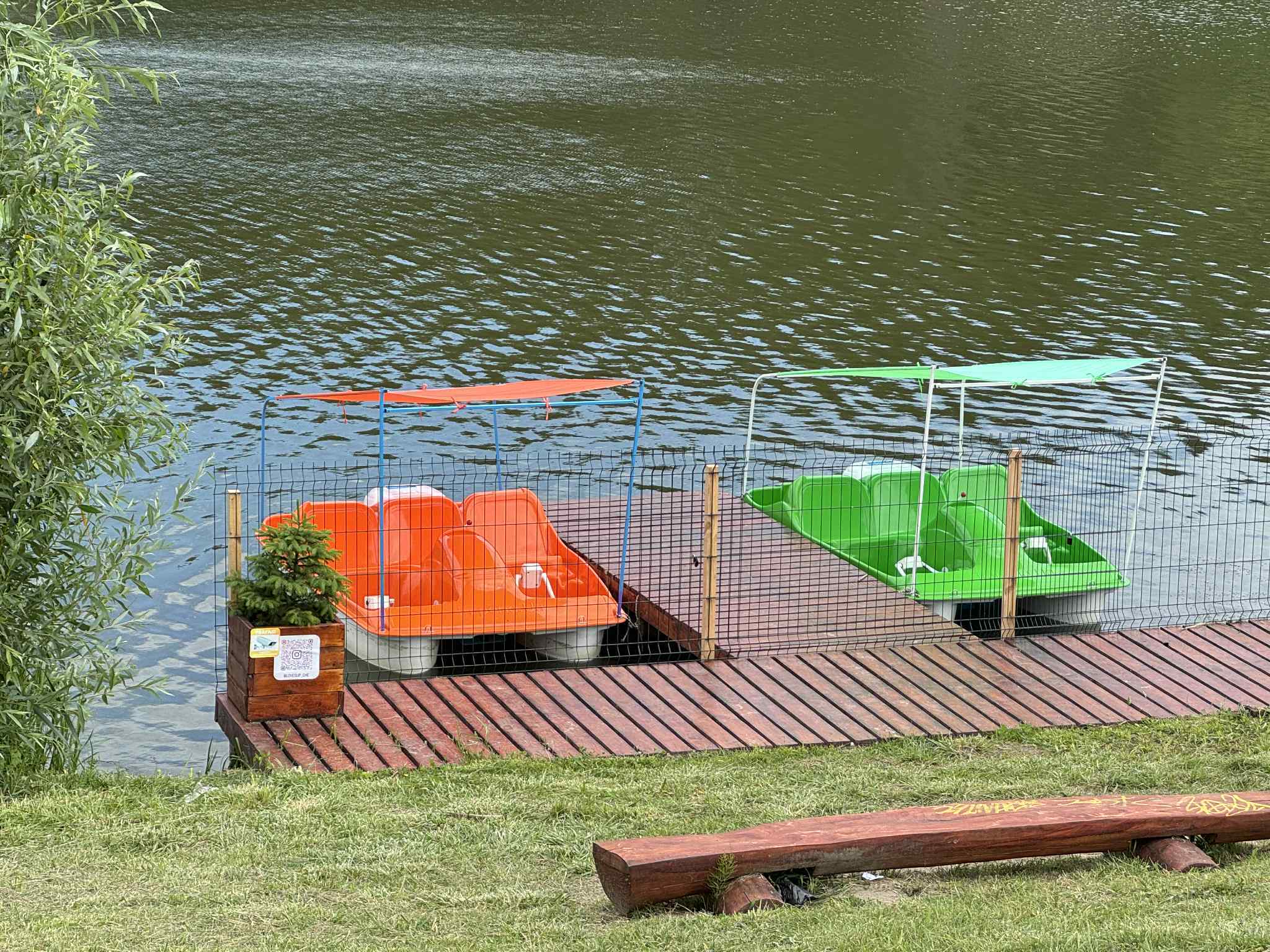 — У нас два великих катамарани, — пояснює хлопець. — Може сісти шість чоловік. 300 гривень за годину. Пів години — 250 гривень. У маленький катамаран вміщається троє: двоє дорослих і дитина. Година оренди — 250 гривень. 200 гривень — пів години. Таких три катамарани.